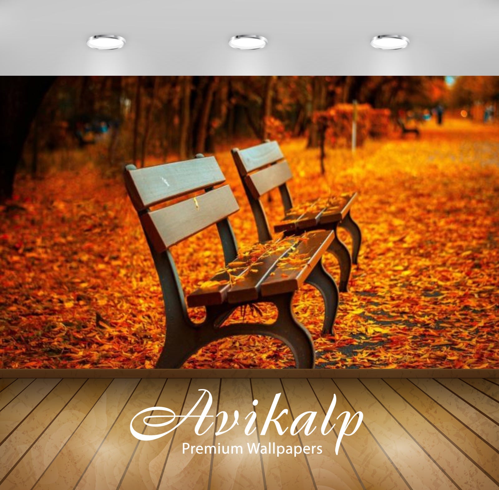 Avikalp Exclusive Awi2614 Fall Orange Autumn Leaves Park With Benches Full HD Wallpapers for Living